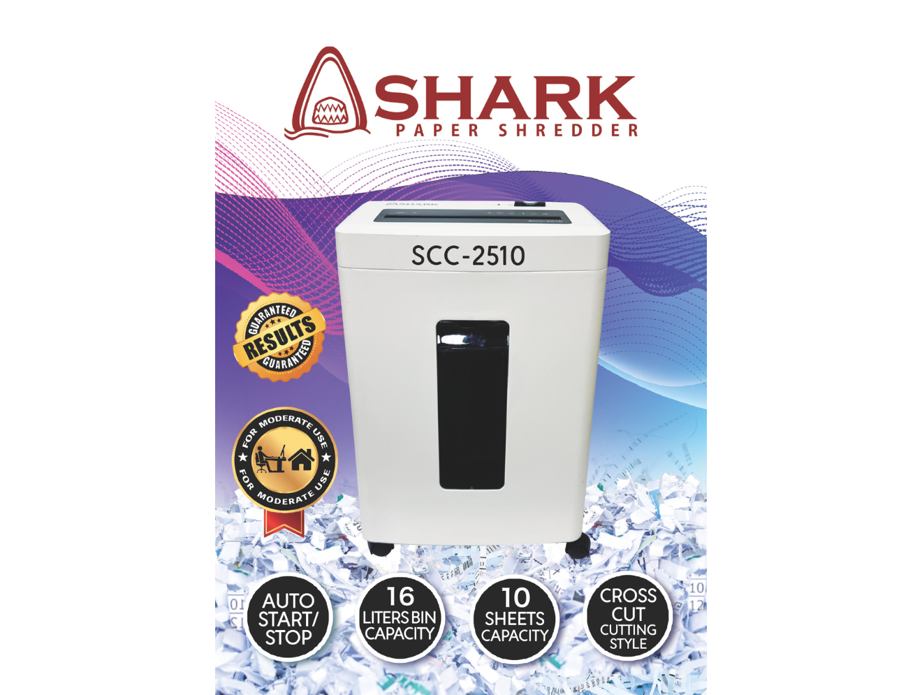 Paper ShredderThe Shark SCC-2212 is a reliable office paper shredder designed for efficient document destruction. It features auto start/stop functionality, a 22-liter bin capacity, and can shred up to 12 sheets at a time. Utilizing a secure cross-cut cutting style, it provides enhanced protection for sensitive information, making it ideal for office use.