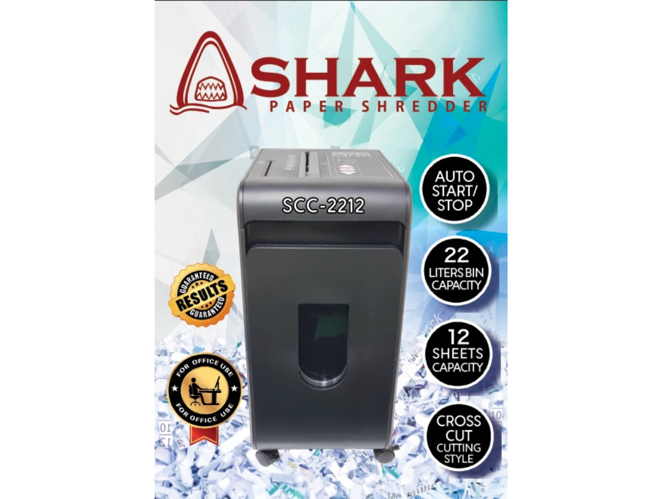 Paper ShredderThe Shark SCC-2212 is a reliable office paper shredder designed for efficient document destruction. It features auto start/stop functionality, a 22-liter bin capacity, and can shred up to 12 sheets at a time. Utilizing a secure cross-cut cutting style, it provides enhanced protection for sensitive information, making it ideal for office use.